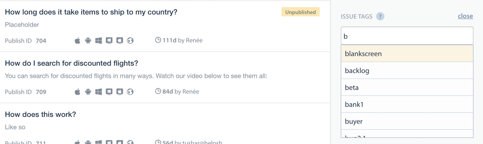 1. FAQs need to be classified using the issue tags field on the dashboard e.g. tags ‘phone’ & ‘tablet’.